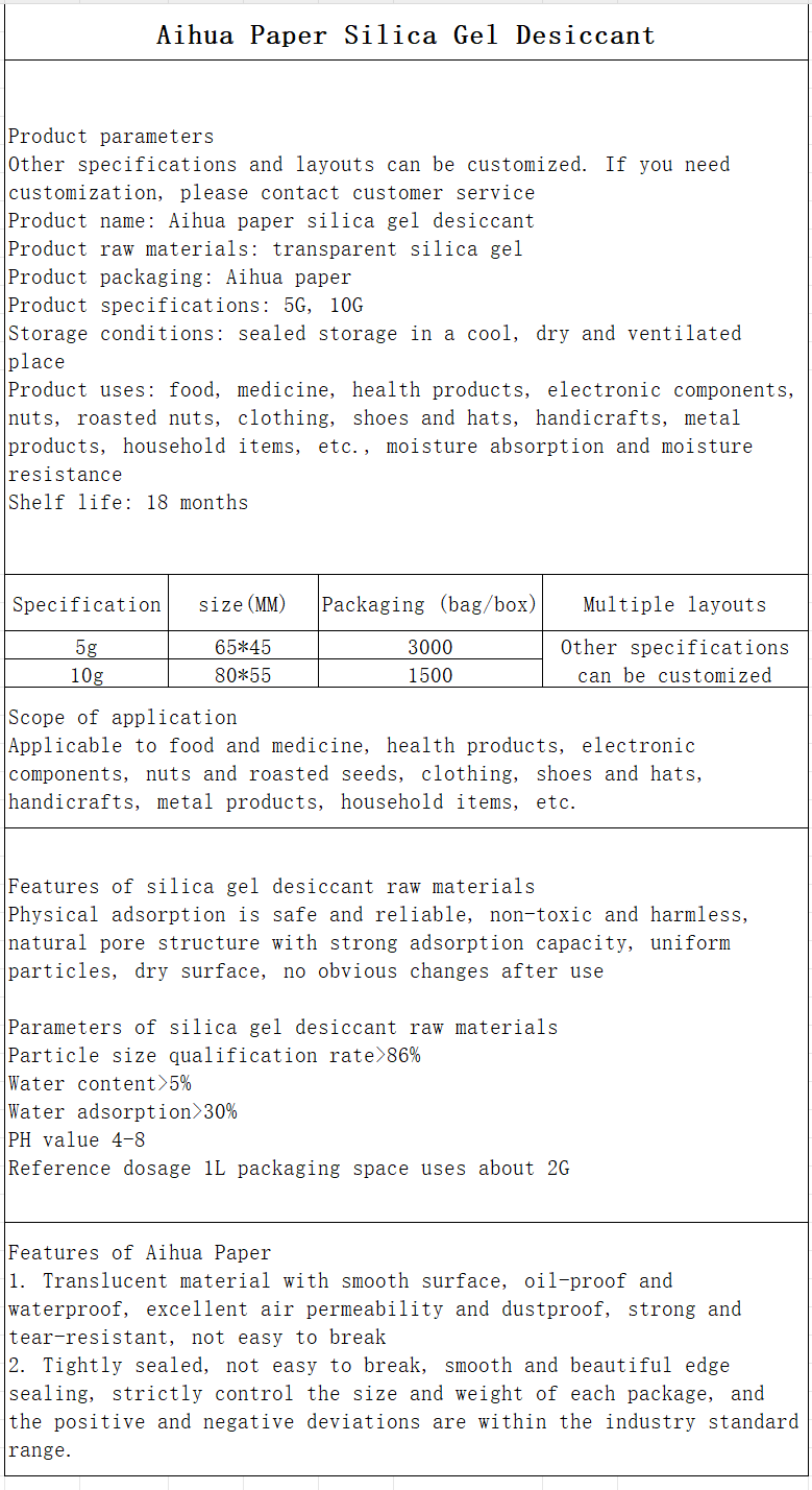 Aihua Paper Silica Gel Desiccant